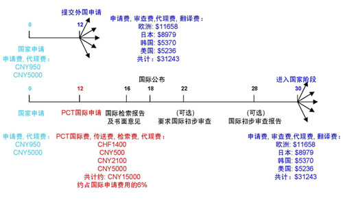 通過(guò)PCT途徑及通過(guò)傳統(tǒng)巴黎公約途徑申請(qǐng)國(guó)外專利費(fèi)用比較